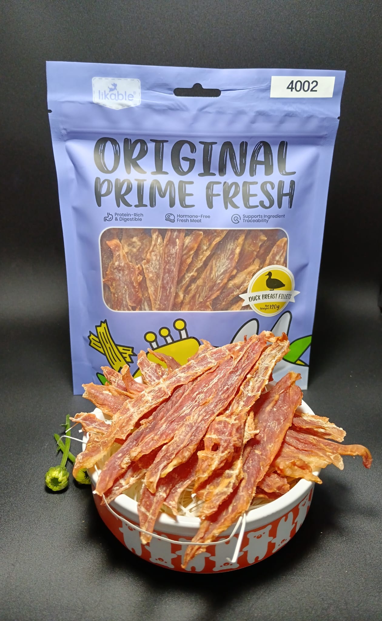 風味鴨肉片 (鴨肉、馬玲薯粉、花生蛋白粉) |